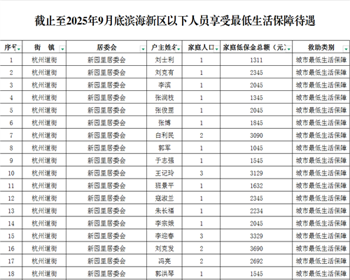 2025年9月低保、低保边缘家庭、特困供养人员名单