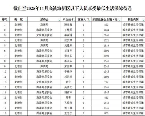 2025年11月低保、低保边缘家庭、特困供养人员名单
