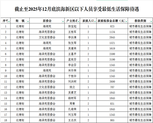 2025年12月低保、低保边缘家庭、特困供养人员名单